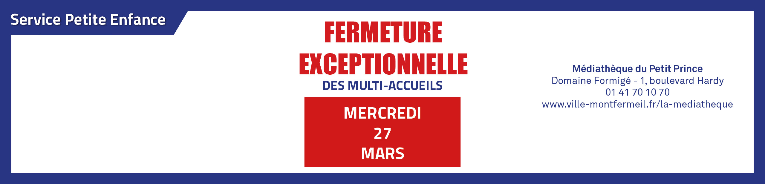 Exceptionnellement, les multi-accueils seront fermés le mercredi 27 mars 2024 en raison d’une journée pédagogique.
