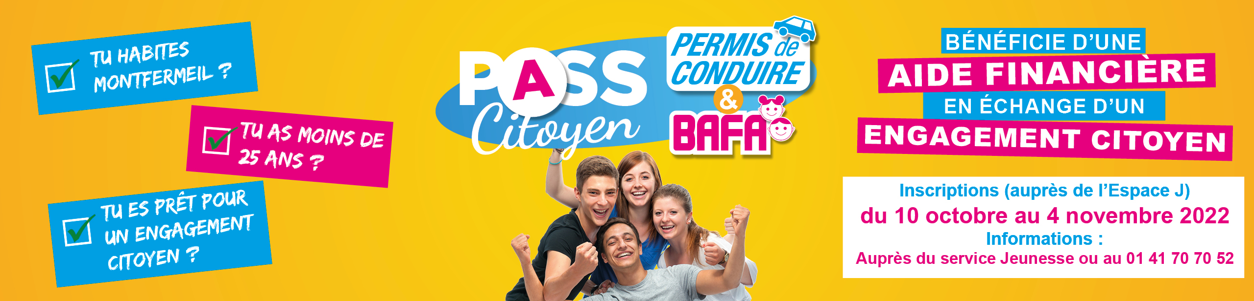 Inscris-toi au Pass Citoyen, la ville de Montfermeil propose l’aide au BAFA et au Permis de conduire.