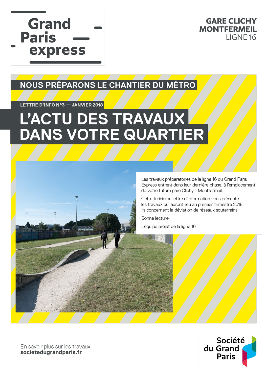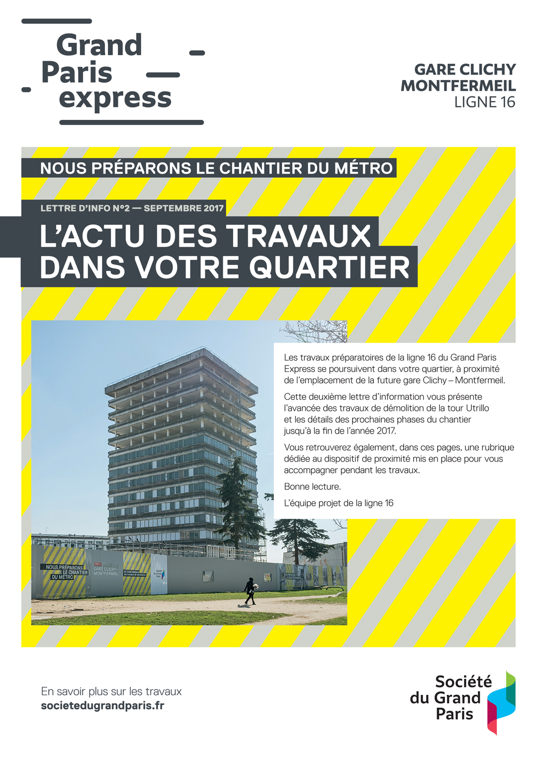 D’ici 2023, le Grand-Paris-Express, plus grand projet d’infrastructure et d’aménagement d’Europe, verra le jour. Avec ses 200 km de réseau, la mise en service de quatre nouvelles lignes autour de Paris et le prolongement de deux lignes existantes (les lignes 11 et 14), le GPE comptera 68 nouvelles gares dont celle de Clichy-Montfermeil, implantée entre la promenade de la Dhuys et les les Ateliers Médicis (ancienne tour Utrillo) et facilitera les déplacements.