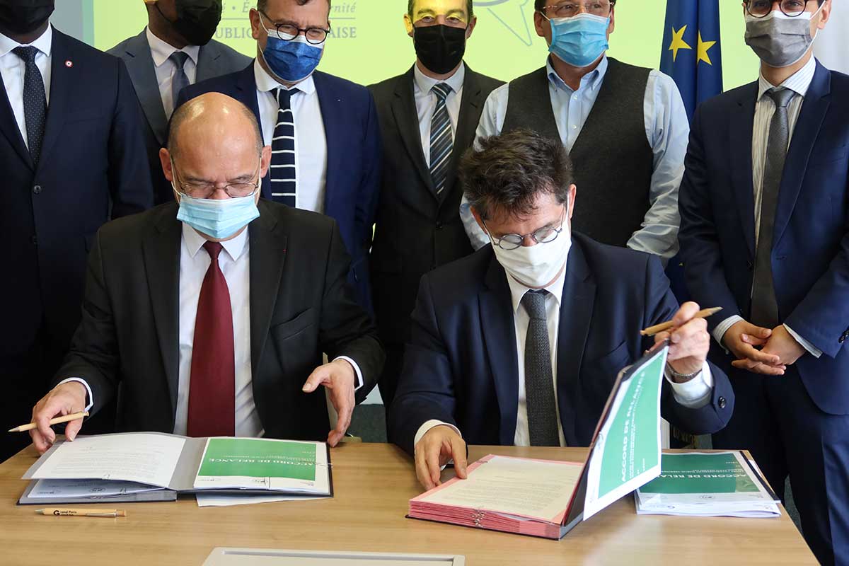 Le préfet de la Seine-Saint-Denis, Georges-François Leclerc, et le président de Grand Paris Grand Est, Xavier Lemoine, ont signé ce lundi 10 mai 2021 le premier accord de relance liant l’État et une collectivité territoriale dans le département de la Seine-Saint-Denis.